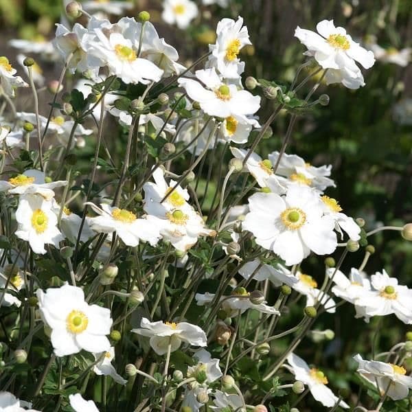 Single, pure white flowers. Vigorous branching perennials with slightly cupped flowers on wiry stems above dark green leaves